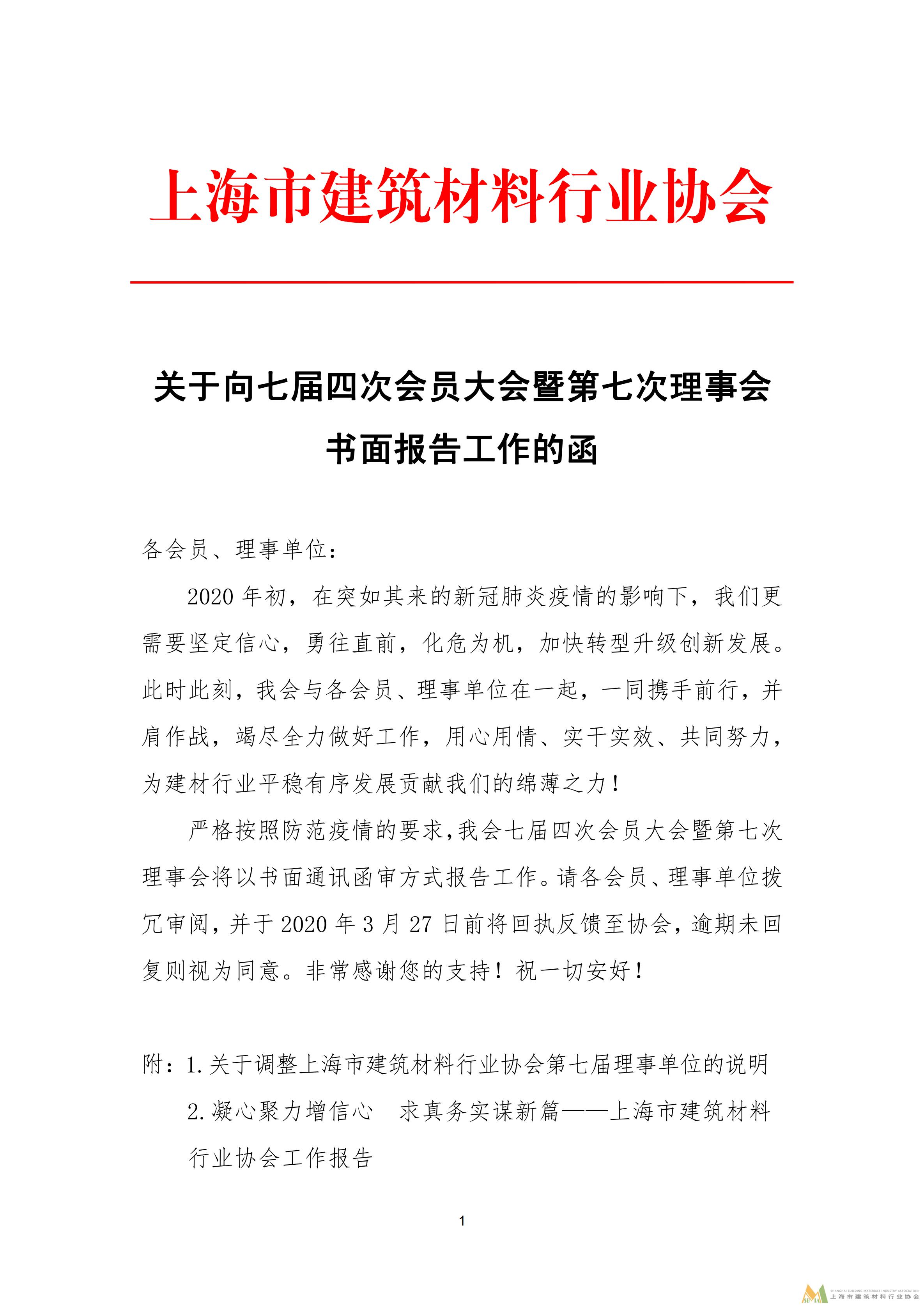 關(guān)于向七屆四次會員大會暨第七次理事會書面報告工作的函