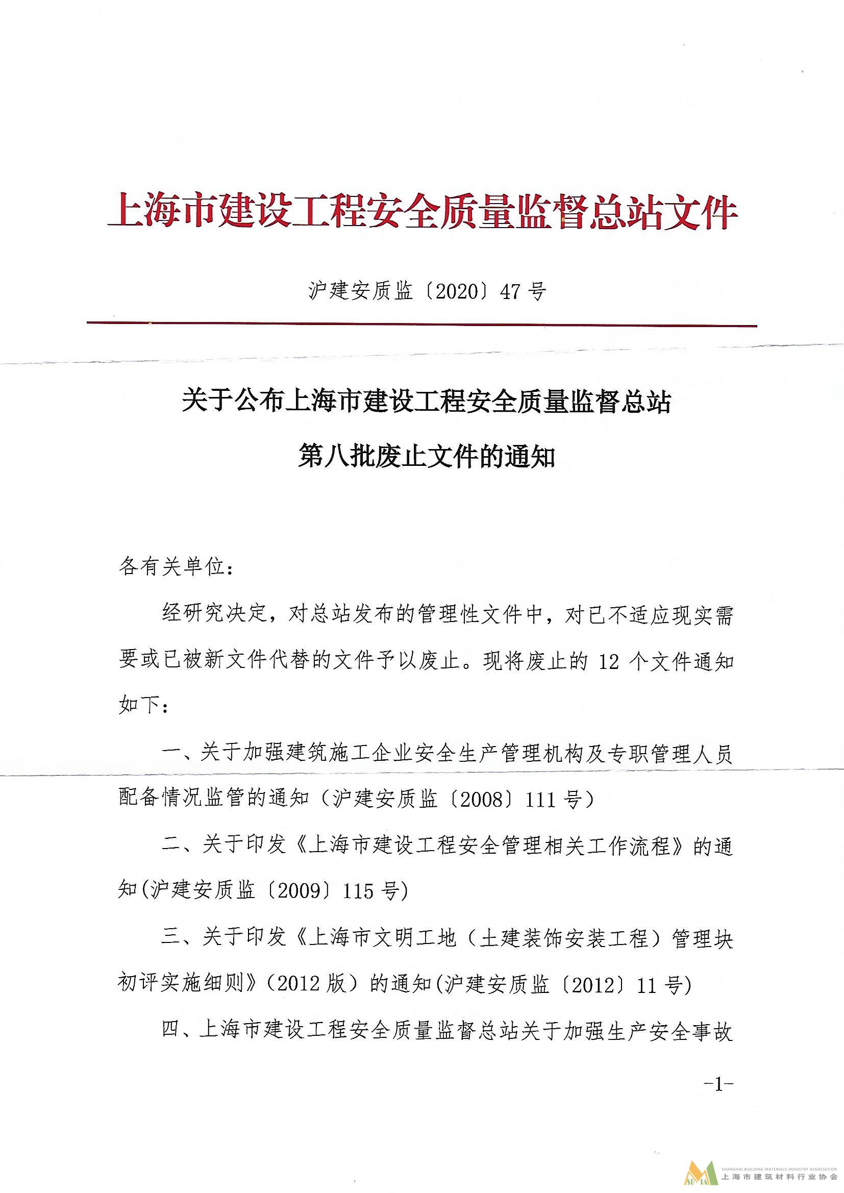 關于公布上海市建設工程安全質量監督總站第八批廢止文件的通知