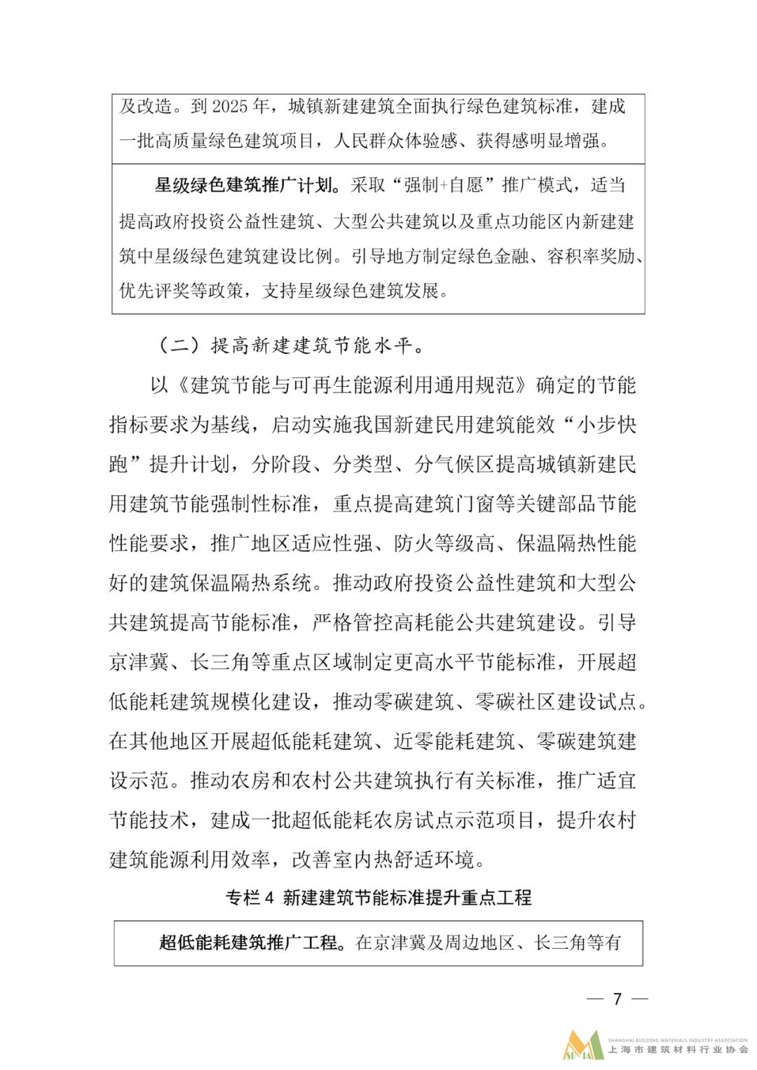 二、提高新建建筑節能水平。重點提高建筑門窗等關鍵部品節能性能要求,推廣地區適應性強、防火等級高、保溫隔熱性能好的建筑保溫隔熱系統。推動政府投資公益性建筑和大型公共建筑提高節能標準,嚴格管控高耗能公共建筑建設。