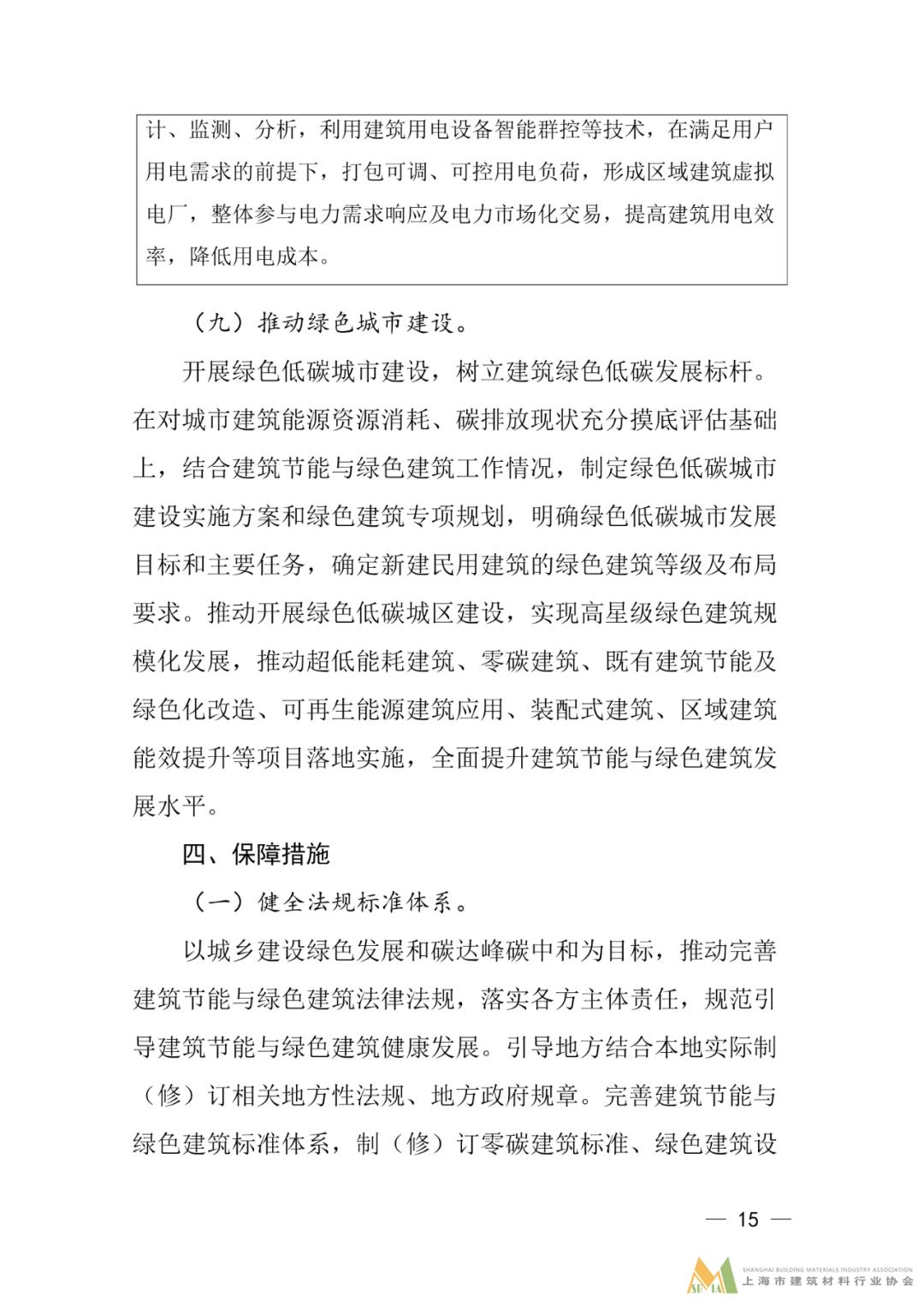 九、推動綠色城市建設。開展綠色低碳城市建設,樹立建筑綠色低碳發展標桿。推動開展綠色低碳城區建設,實現高星級綠色建筑規模化發展,推動超低能耗建筑、零碳建筑、既有建筑節能及綠色化改造、可再生能源建筑應用、裝配式建筑、區域建筑能效提升等項目落地實施,全面提升建筑節能與綠色建筑發展水平。