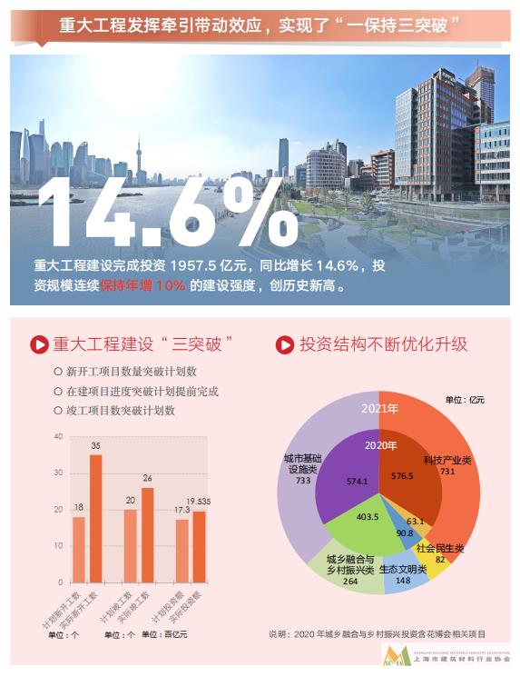 《上海住房和城鄉(xiāng)建設管理發(fā)展報告(2022)》(以下簡稱《報告》)正式對外發(fā)布。《報告》由市建委委托市建設交通發(fā)展研究院組織編寫,今年是第一期,今后將每年定期發(fā)布,為行業(yè)內(nèi)外了解上海市住房城鄉(xiāng)建設管理發(fā)展情況提供參考。 此次發(fā)布的是《報告》“簡本”,由2021年“發(fā)展”“民生”“治理”“保障”和“2022年重點工作”五個部分組成。《報告》指出2021年中心城區(qū)完成成片二級舊里以下房屋改造90.1萬平方米、受益居民4.5萬戶;既有住宅加裝電梯完工1579臺;完成100個“美麗街區(qū)”建設;561個住宅小區(qū)新增電動自行車充電設施。詳見↓ 《報告》指出,2021年上海住房城鄉(xiāng)建設管理實現(xiàn)了“十四五”良好開局。 一、在“發(fā)展”方面,重大工程建設、建筑業(yè)和房地產(chǎn)業(yè)在上海經(jīng)濟穩(wěn)增長以及重大國家戰(zhàn)略落實中發(fā)揮了關鍵作用。 2021年上海市重大工程建設完成總投資1957.5億元,比上年增長14.6%。建筑業(yè)實現(xiàn)總產(chǎn)值9236.42億元,比上年增長11.6%。 二、在“民生”方面,六大“民心工程”落實人民城市建設成效。 實施舊區(qū)改造工程、黃浦江兩岸公共空間建設工程、蘇州河兩岸公共空間建設工程、既有多層住宅加裝電梯工程、城中村改造工程、架空線入地和桿箱整治工程等六項“民心工程”。其中,中心城區(qū)完成成片二級舊里以下房屋改造90.1萬平方米、受益居民4.5萬戶。既有住宅加裝電梯完工1579臺。架空線入地和桿箱整治竣工約207公里,建成綜合桿6000根。 三、在“治理”方面,黨建引領,全面推進數(shù)字化轉(zhuǎn)型、智慧治理以及環(huán)境治理、風險防控和綜合執(zhí)法。 推進綠色治理,新開工裝配式建筑面積約3828萬平方米,占新開工建筑比例超過90%。完成100個“美麗街區(qū)”建設。橋下空間品質(zhì)提升10處、公共空間休憩座椅設置和優(yōu)化9508處。推進雨污混接改造、老舊電梯修理改造更新、消防設施改造等小區(qū)品質(zhì)提升建設項目,561個住宅小區(qū)新增電動自行車充電設施。 四、在“保障”方面,繼續(xù)深化落實部市合作協(xié)議,通過法規(guī)建設、科技創(chuàng)新和審批改革等為住房城鄉(xiāng)建設管理事業(yè)發(fā)展提供保障。 配合市人大編制通過《上海市城市更新條例》和《黃浦江蘇州河濱水公共空間條例》,編制實施《上海市住房和城鄉(xiāng)建設管理“十四五”科技發(fā)展規(guī)劃綱要》,推進實施工程建設項目審批制度4.0版改革等。 五、2022年重點工作,市住房城鄉(xiāng)建設管理委將繼續(xù)堅持穩(wěn)字當頭、穩(wěn)中求進,統(tǒng)籌發(fā)展與安全,助力經(jīng)濟恢復和重振,主要體現(xiàn)在“五個聚焦”: 聚焦穩(wěn)增長。充分發(fā)揮城鄉(xiāng)建設在經(jīng)濟社會發(fā)展中的基礎功能作用。加快重大工程項目建設,全年安排正式項目173項、預備項目43項,完成投資額2000億元以上。 聚焦惠民生。全面完成剩余成片舊區(qū)改造約20萬平方米、居民1.1萬戶工作任務。既有住宅加裝電梯全年簽約5000臺、完工2000臺。新啟動8個以上城中村改造項目。建設籌措保障性租賃住房17.3萬套(間)。 聚焦提品質(zhì)。探索開展“道路+”“公園+”“生活圈+”工程。完成100個高品質(zhì)美麗街區(qū)建設。聚焦建筑、濱水、街道、綠化、地下等城市“五大空間”,提升城市風貌和品位。完成架空線入地和桿箱整治100公里。完成101個社區(qū)微更新和30個橋下空間品質(zhì)提升點位建設。 聚焦促轉(zhuǎn)型。全面啟動城鄉(xiāng)建設領域碳達峰行動。全年落實超低能耗建筑不少于200萬平方米,既有建筑節(jié)能改造不少于400萬平方米;開展建筑能耗監(jiān)測系統(tǒng)升級和建筑碳排放監(jiān)管平臺建設,監(jiān)測樓宇覆蓋面積達到1億平方米。 聚焦保安全。堅決遏制重特大安全事故,持續(xù)提高防災減災救災能力和城市韌性。加快推進隱患管道整治攻堅,完成老舊燃氣地下管道改造100公里。全力抓好地下空間、高空墜物、玻璃幕墻、自建房、建筑工地和易積水小區(qū)等重點領域的安全風險隱患排查整治工作。