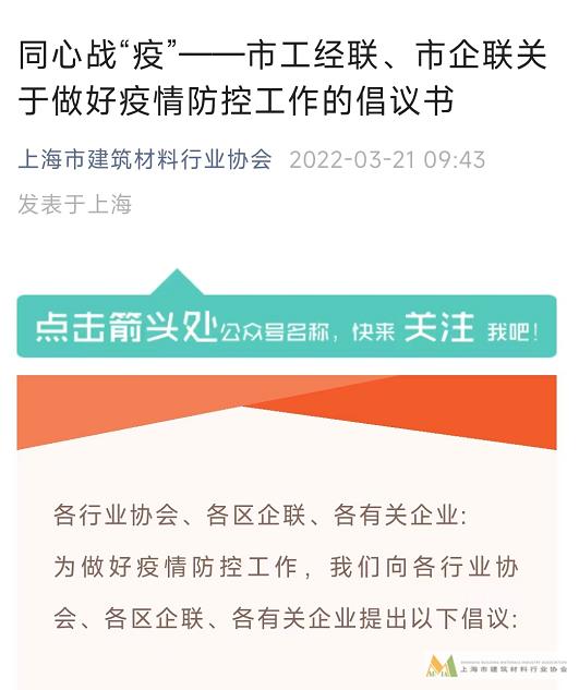 上下同欲者勝,風雨同舟者興。在這場疫情防控阻擊戰中,上海建材人眾志成城守滬抗疫,用實際行動踐行了責任與擔當。現在進入企業生產經營和疫情防控常態化階段,讓我們時時關注市、區、街鎮防疫要求及疫情變化情況,及時應對應變,守望相助,共克時艱迎“雙復”,把疫情耽誤的時間搶回來,堅決打贏疫情防控和復工復產攻堅戰!